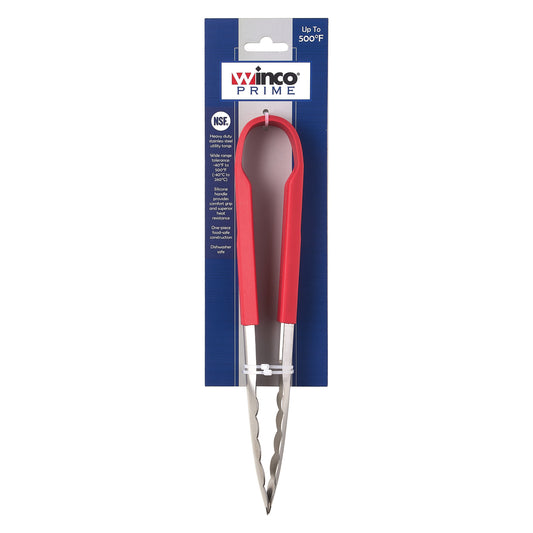 UTSH-9R - Winco Prime 9" Stainless Steel Utility Tongs with Red Silicone Handle