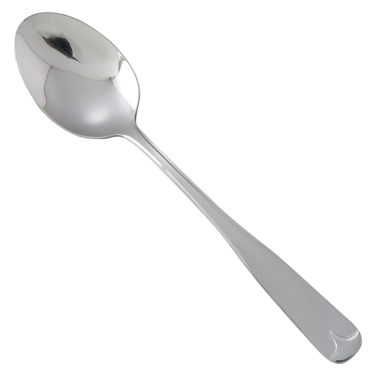 Create an elevated table setting with this commercial-grade 8" dinner spoon, part of the Lisa flatware collection by Winco. This versatile dinner spoon is ideal for main courses, soups or as a general purpose table spoon. The Lisa flatware collection features clean lines and a distinctively raised pitch. Forged from heavy-duty stainless steel, this heavyweight dinner spoon is designed to withstand daily use in a commercial foodservice environment making it an ideal choice for hotels, cafes and restaurants. Each piece of the Lisa flatware collection is dishwasher safe for both residential and commercial dishwashers. The elegant mirror finish is designed to last and is resistant to pitting or dulling, even after repeated washes.