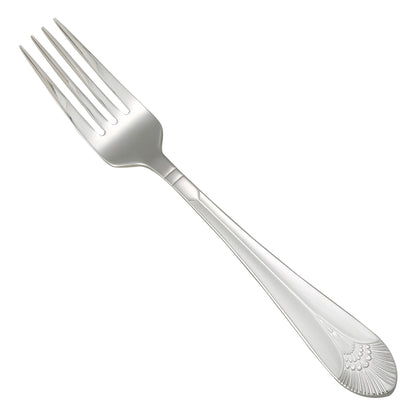 Create an elevated table setting with this commercial-grade 8.5" dinner fork, part of the Peacock flatware collection by Winco. This versatile dinner fork is ideal for main courses or as a general purpose dining fork. The Peacock flatware collection features a flared handle and sculpted detailing on the handle that blends seamlessly into any elaborate place setting. Forged from heavy-duty stainless steel, this heavyweight dinner fork is designed to withstand daily use in a commercial foodservice environment making it an ideal choice for hotels, cafes and restaurants. Each piece of the Peacock flatware collection is dishwasher safe for both residential and commercial dishwashers. The elegant mirror finish is designed to last and is resistant to pitting or dulling, even after repeated washes.