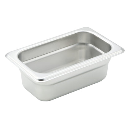 Material 18/8 Stainless Steel Pan Size Ninth (1/9) Length 6.94 in 17.63 cm Width 4.25 in 10.8 cm Height 2.63 in 6.68 cm -