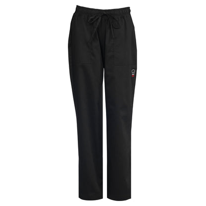 - Keep your kitchen staff cool with the UNF-8KS women’s straight leg chef pants from Winco. These pull-on style pants features an elastic waist and drawstring for secure fastening. The lightweight 65/35 poly-cotton blend ensures maximum breathability ideal for chefs and line cooks in hot hotel and restaurant kitchens. The black pants offer ample storage with two cargo pockets featuring velcro closures and dual rear pockets. The traditional styling of these chef pants adds an upscale flare that elevates any dining experience. Machine washable.